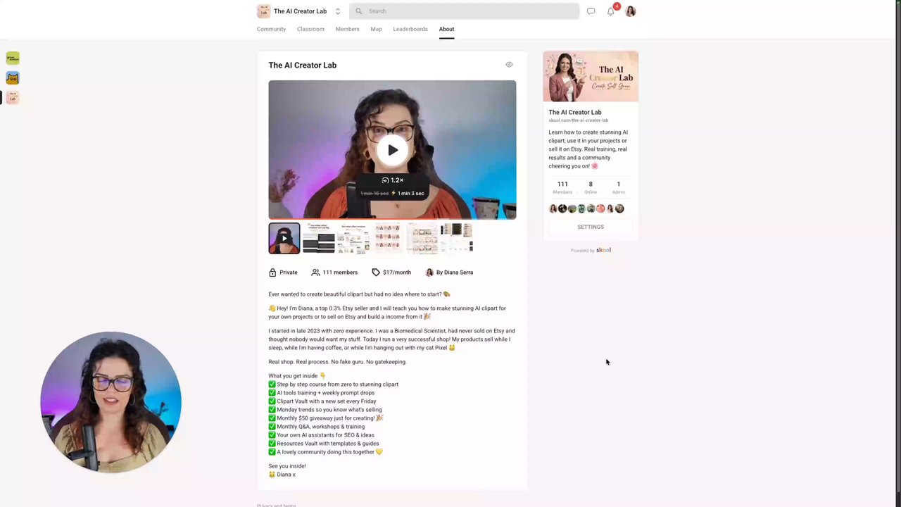 It is my private, friendly community for anyone who wants to learn how to create stunning AI clipart, use it in their own projects, or sell it on Etsy. Real training. Real results. And I am cheering you on the whole way.